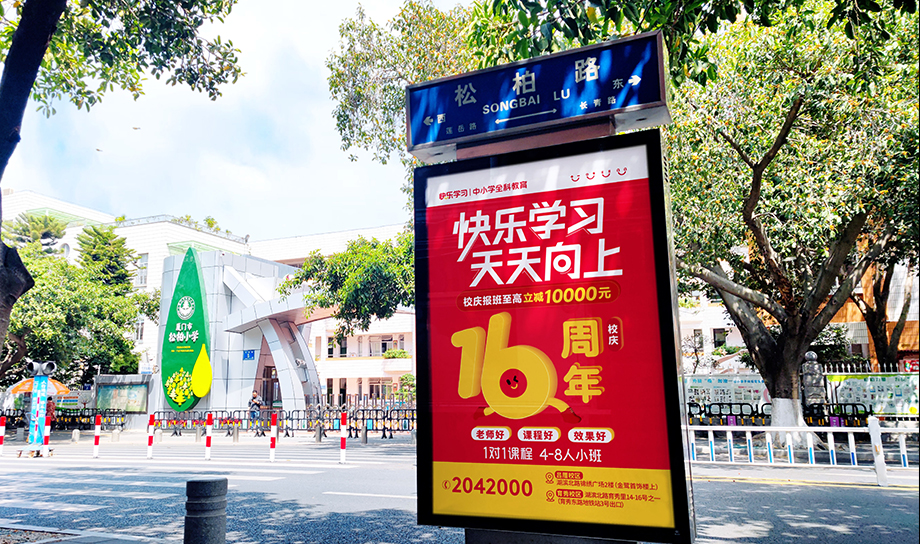 快樂學(xué)習(xí)全城多個(gè)黃金路段投放,覆蓋廈門各大中小學(xué)周邊路段及交叉口,定位精準(zhǔn)人群,點(diǎn)對(duì)點(diǎn)投放。